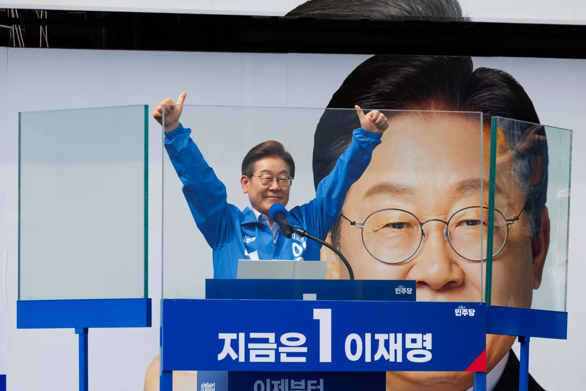 5月21日,李在明在仁川富平區參加競選活動。攝影師:趙成俊/彭博社儘管李在明仍保持優勢,但若金文洙能説服改革黨候選人李俊錫退選並吸納其大部分支持者,雙方支持率或將持平。