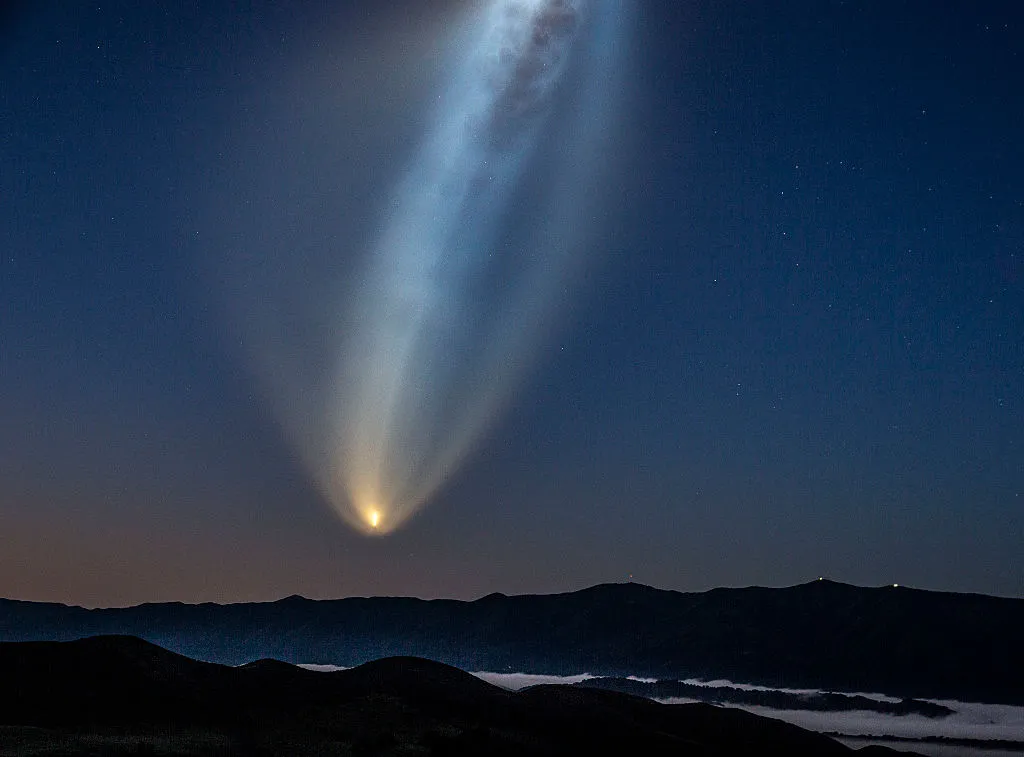搭載多顆星鏈衞星的獵鷹9號火箭。