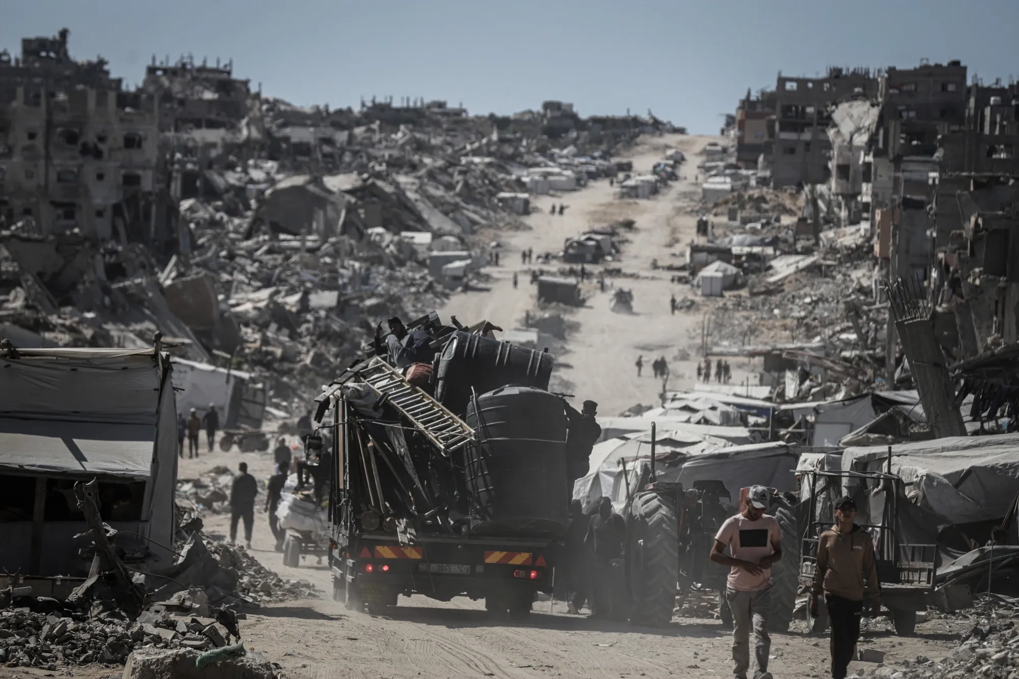 2025年5月21日星期三,流離失所的巴勒斯坦人在加沙地帶北部的賈巴利亞難民營搬運他們的財物。照片:Ahmad Salem/Bloomberg隨着以色列和加沙地帶局勢升級,德國外交政策的另一支柱也岌岌可危。出於歷史原因,歷任總理都反覆強調,以色列的安全是德國的國家利益。因此,對以色列政府及以軍在加沙地帶大規模軍事行動的批評實際上是不可能的。柏林方面最多隻是告誡以色列,在打擊加沙地帶哈馬斯恐怖分子的行動中應遵守國際法。