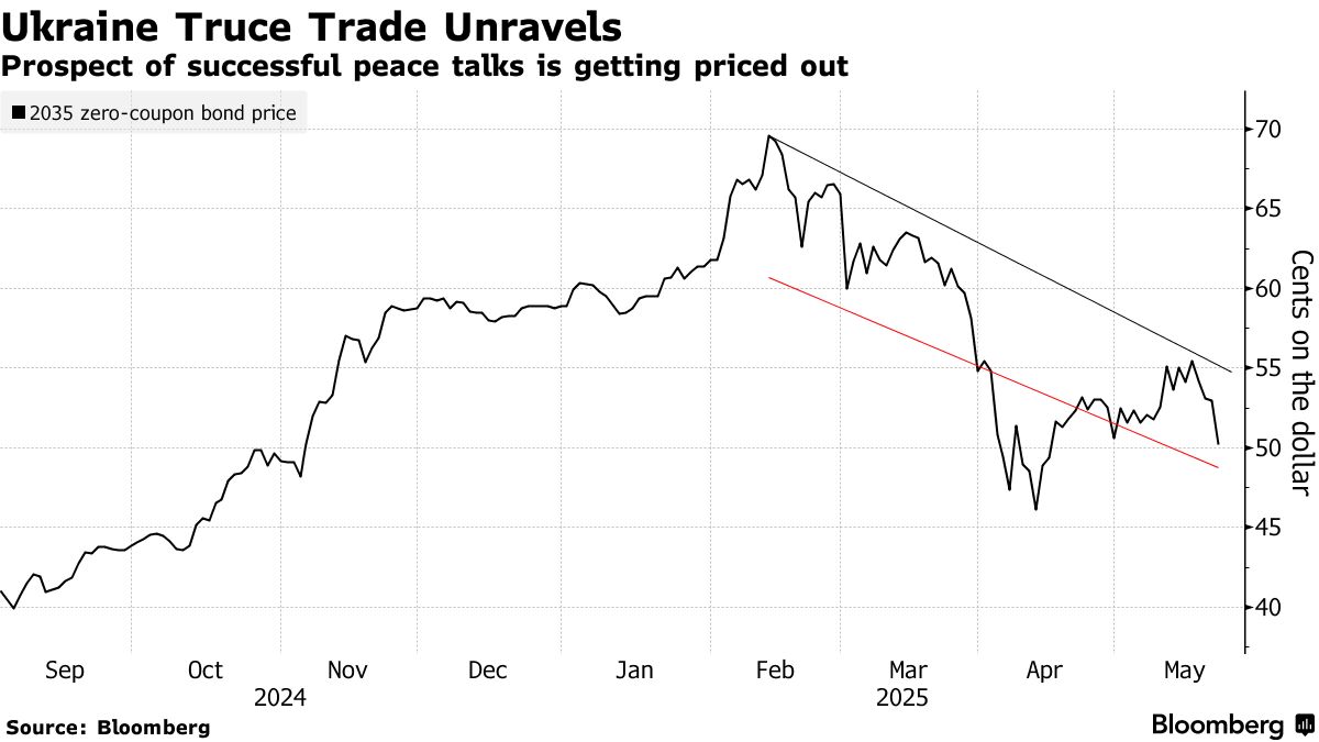 “和平談判延遲的主要影響顯然體現在烏克蘭主權債券上,”Frontier Road的投資組合經理馬丁·貝爾塞切表示,“對這些債券的投資是基於某種停火或戰鬥解決的預期。”
