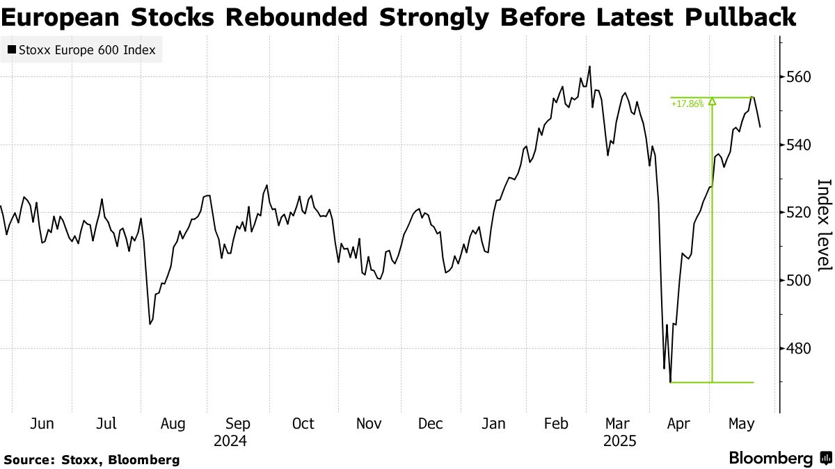 根據4月宣佈的互惠税率,該貿易集團原本面臨20%的關税,而臨時暫停將税率降至10%直至7月9日。隨後對貿易協議的預期提振了市場情緒,歐洲斯托克600指數從4月低點反彈約18%,上週有所回落。