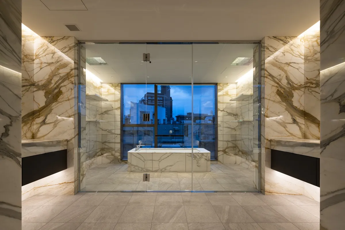 表參道The Marq One頂層公寓的浴室圖片來源:EQT集團EQT集團於2021年開發並完成了這棟包含14個單元的房產項目,隨後分階段出售公寓。目前仍有一套待售。
