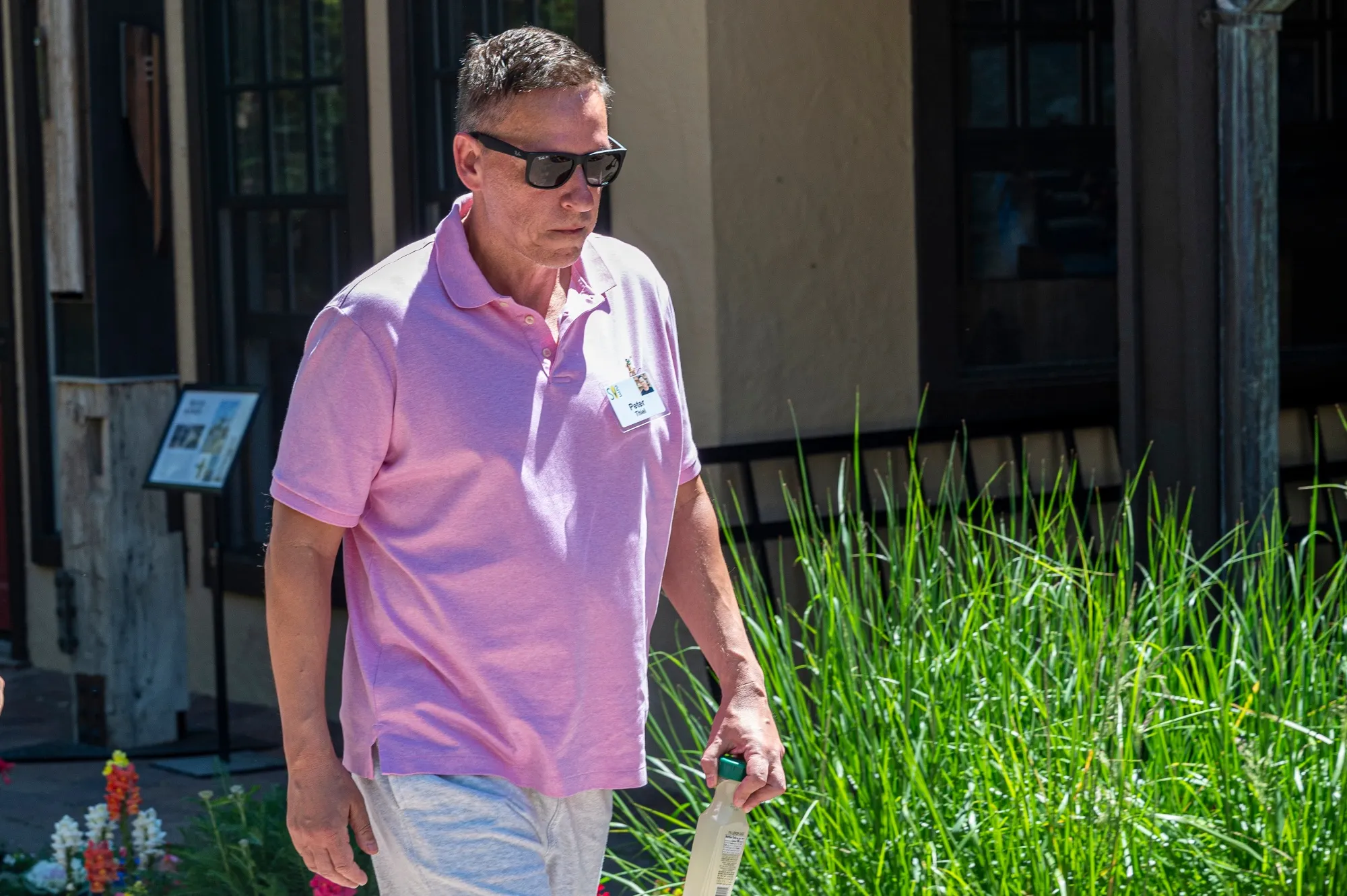 2023年7月,彼得·蒂爾在愛達荷州太陽谷。攝影師:David Paul Morris/彭博社與受益於供應鏈創新、能更便捷廉價獲取零部件的消費電子行業不同,許多衞星製造商仍依賴耗時費錢的專用部件。為解決這一問題,EnduroSat既採購消費電子廠商量產的核心組件,也自主建造多個系統。