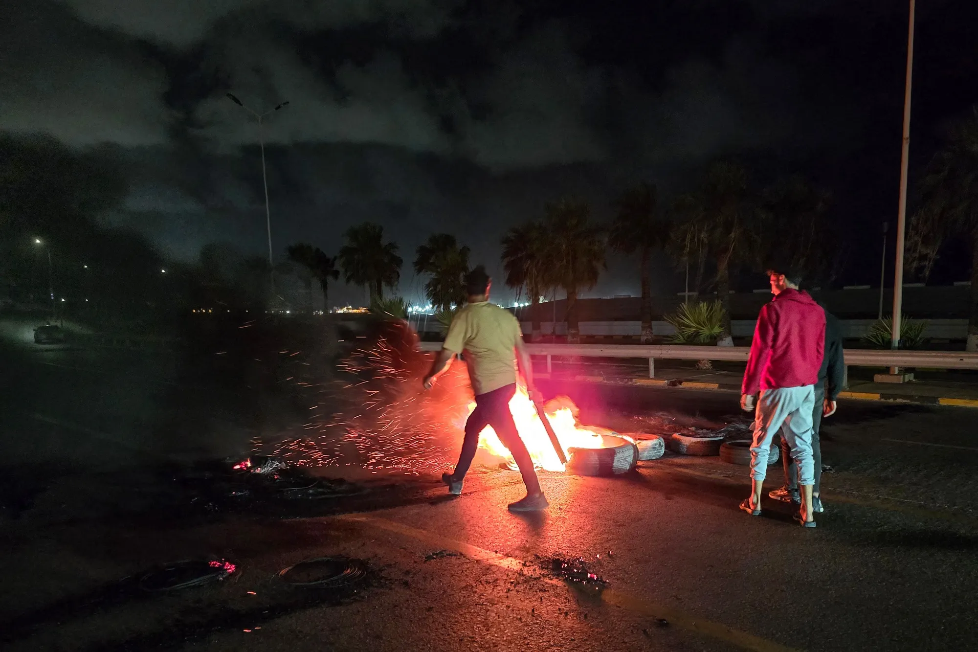 5月25日,要求總理下台的抗議者封鎖了的黎波里一條道路。