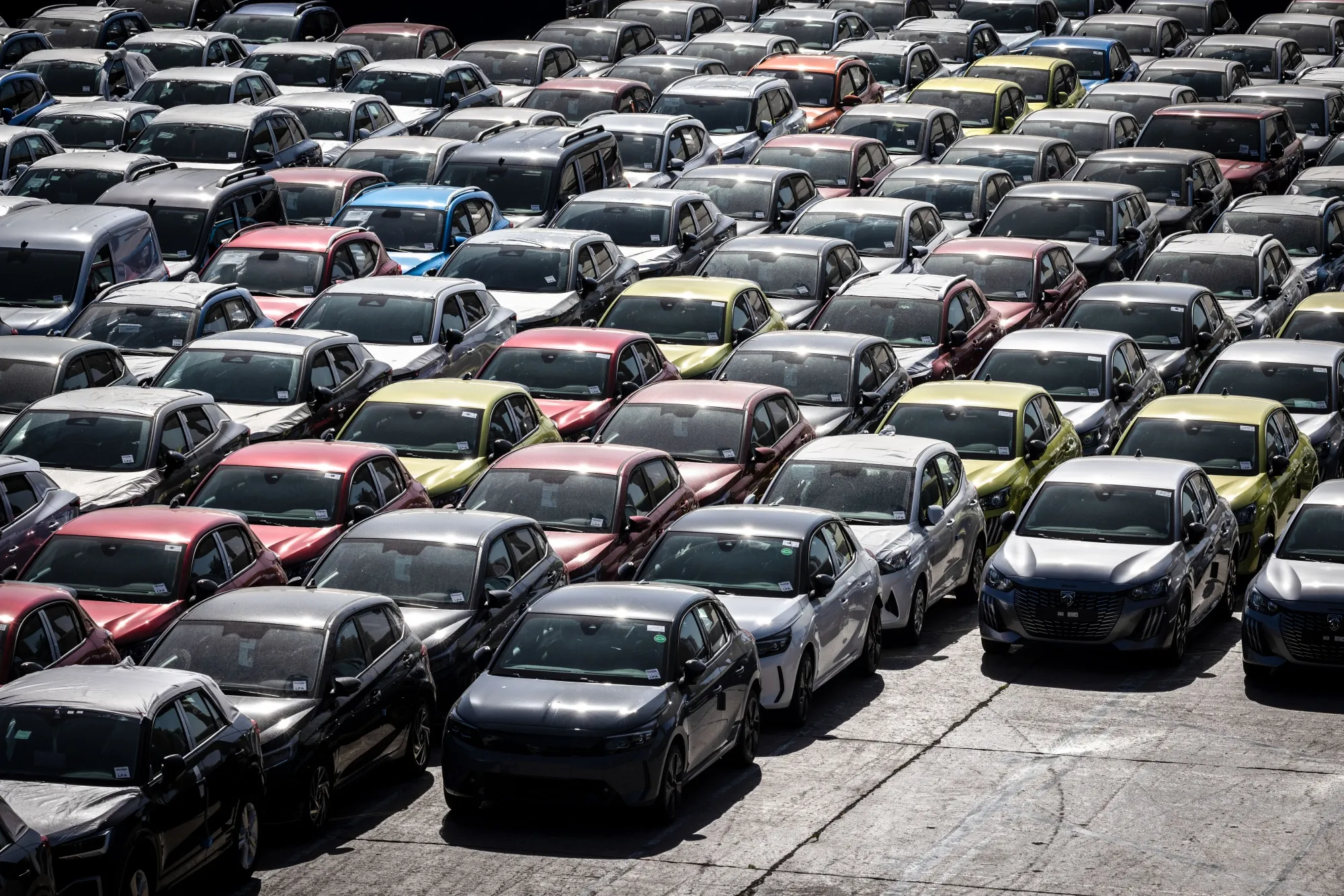西班牙巴塞羅那港碼頭,剛出廠的新車覆蓋着保護膜。