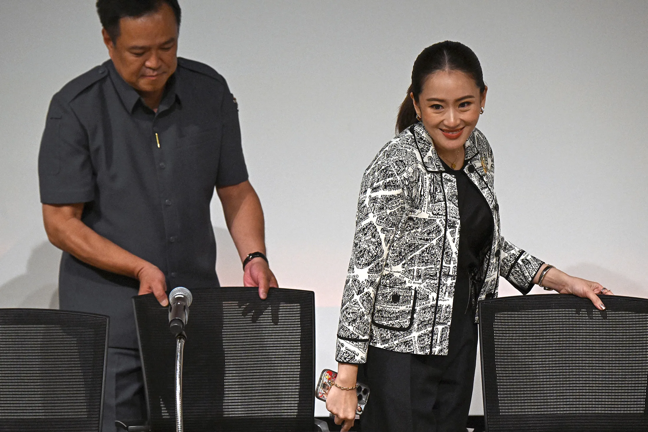 2024年8月,貝東丹·西那瓦(右)與阿努廷·參威拉軍在曼谷合影。攝影師:Lillian Suwanrumpha/AFP/Getty Images泰國總理貝東丹·西那瓦上任未滿一年的政府正面臨最大考驗,兩大執政聯盟黨派因國家預算問題爆發內訌。