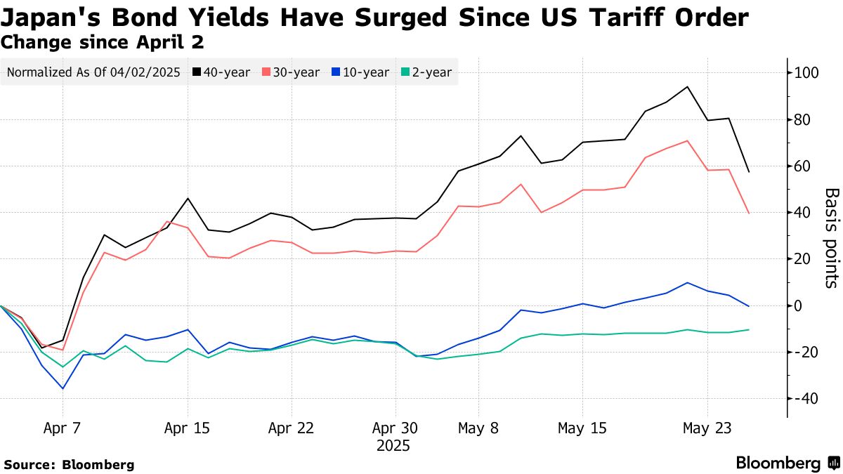 週二超長期日本國債反彈,40年期收益率下降25個基點,因有跡象表明財務省可能準備調整發債計劃以緩解市場動盪。日本市場的動向——緊隨上週全球借貸成本激增的上行壓力之後——帶動了從美國到德國的長期債券收益率走低,並波及外匯交易。