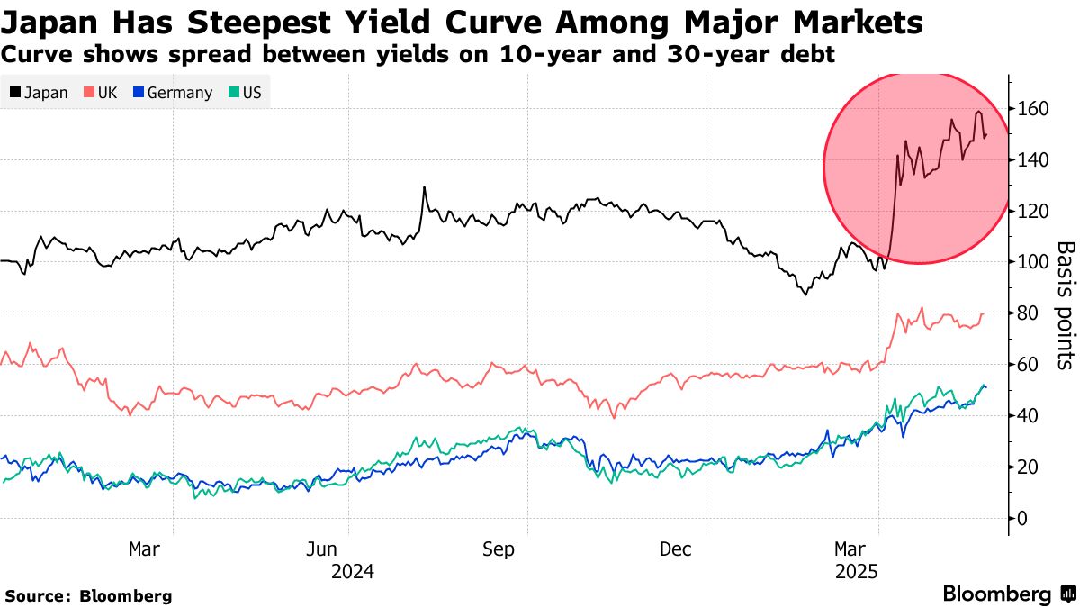 自特朗普四月公佈"解放日"關税政策以來,全球多個主要市場的長期債券持續走弱。關税政策的不確定性、是否因此導致政府支出增加,以及可能對經濟產生的影響都引發擔憂。在美國,穆迪評級剝奪該國最後一項AAA信用評級後,五月債券拋售潮進一步加劇。而日本長期債券的波動尤為劇烈。
