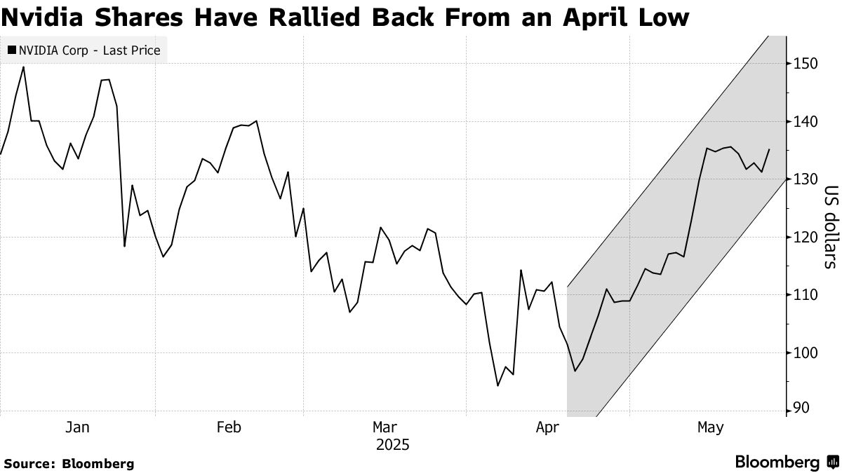 在上月導致標普500指數瀕臨熊市的暴跌中,英偉達和其他科技巨頭是跌幅最大的股票之一。在特朗普暫時暫停最嚴厲關税且財報顯示需求保持穩定後,許多股票已收復大部分失地。自4月中旬財報季開始以來,納斯達克100指數的表現優於標普500指數。