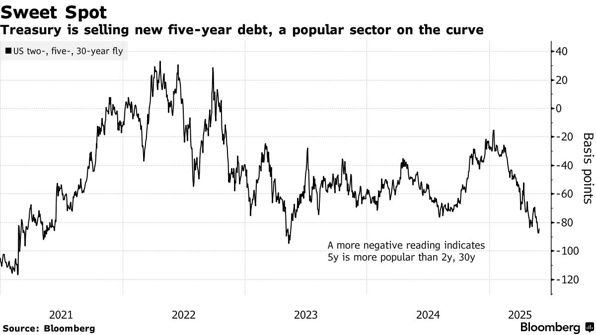 週三的五年期國債拍賣凸顯了這一期限債券的優勢——相比更短期和更長期債券,它對貨幣和財政政策的敏感性較低,因此成為投資者的理想選擇。此前週二的兩年期國債拍賣需求強勁。