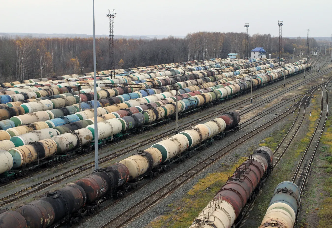 俄羅斯下諾夫哥羅德附近澤列齊諾火車站的燃油和石油鐵路貨車。