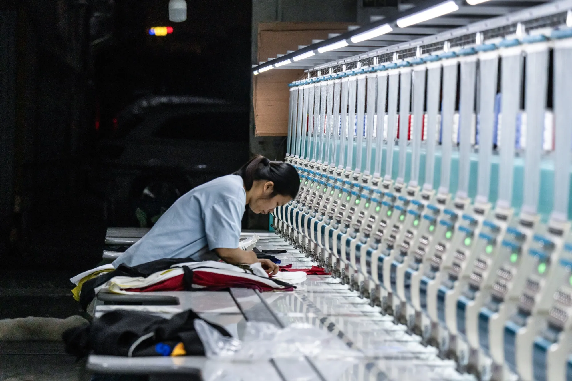 2025年4月15日星期二,中國廣州一家紡織車間裏的女工。攝影:沈起來/彭博社儘管中美貿易戰停火後,經濟學家們已上調了對中國今年經濟增長和出口的預期,但他們仍預計中國的通縮壓力將進一步惡化。