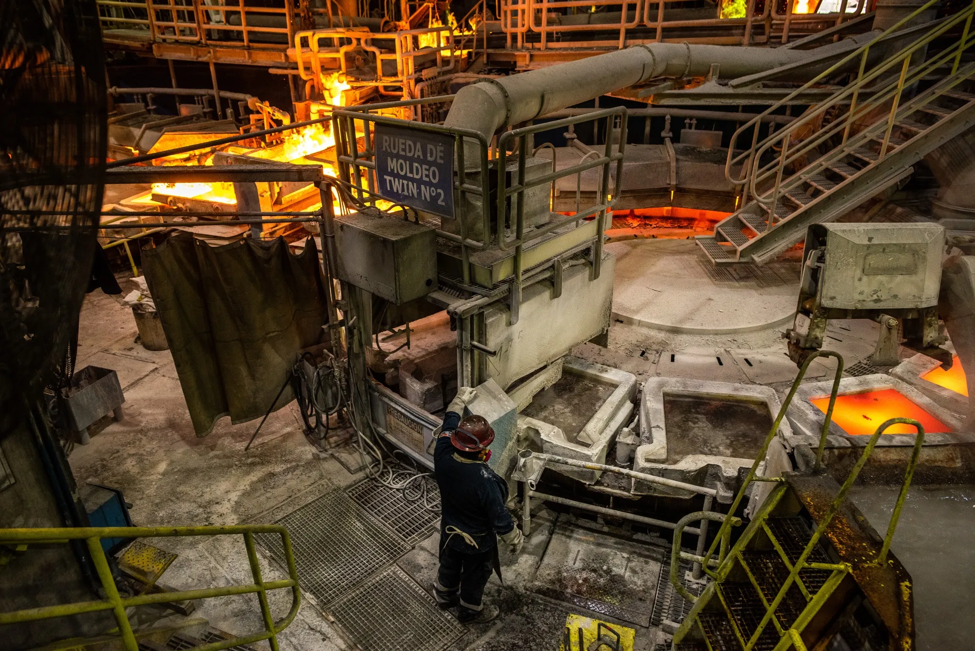 智利馬查利銅礦加工廠的冶煉區。