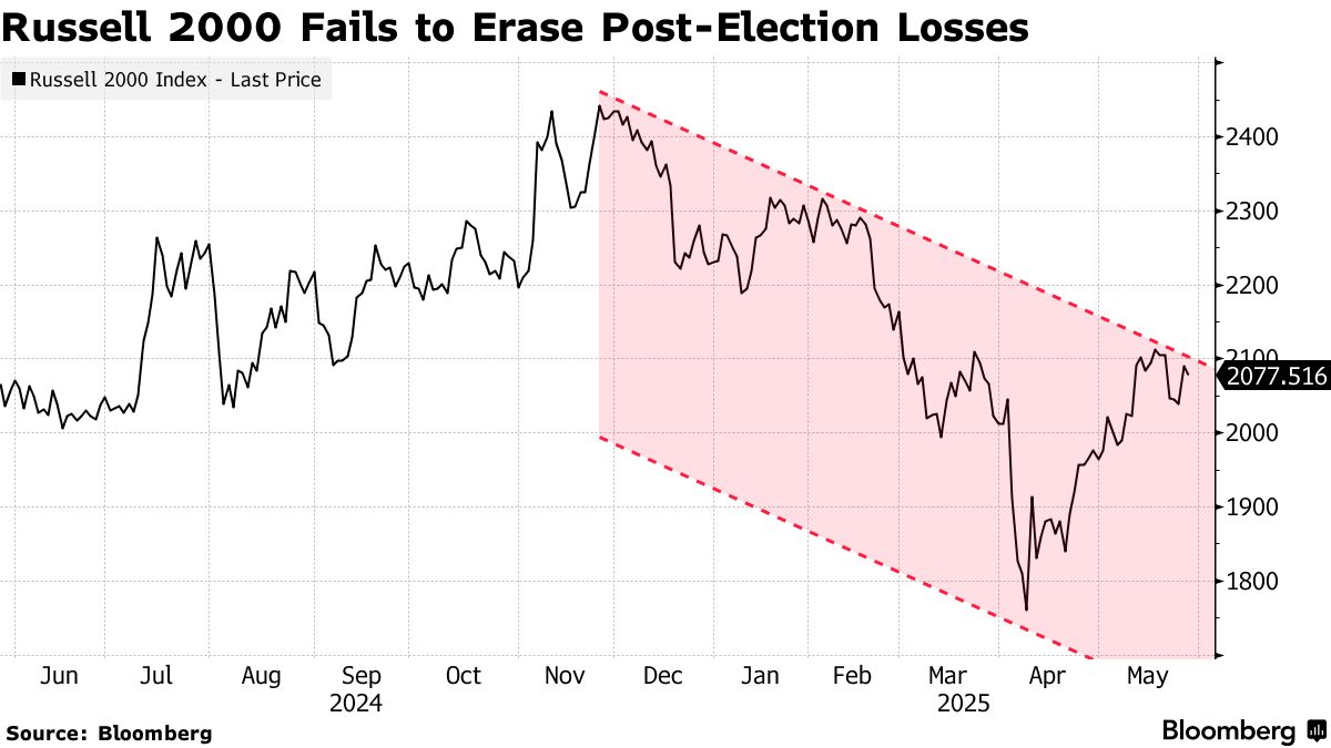 小盤股原本有望受益於特朗普激進的貿易政策,因為它們通常以本地市場為主,國際業務較少。但4月初特朗普宣佈加徵關税引發增長放緩和潛在衰退的擔憂,導致羅素2000指數跌入熊市。