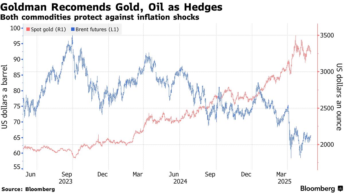 高盛集團將黃金和原油列為長期投資組合中抵禦通脹的對沖工具,指出在美國機構信譽度引發市場擔憂的背景下,黃金的避險屬性具有吸引力,而原油則能有效應對供應衝擊。