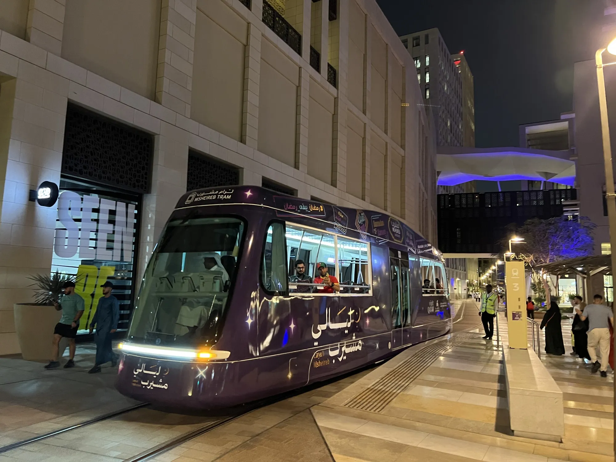 氫能源驅動的空調電車穿行在姆什萊布區的街道上。攝影師:安東尼·弗林特姆什萊布宣稱整個社區都獲得了LEED認證,這裏擁有數千塊太陽能板、分佈式空調能源系統、用於灌溉和冷卻的循環灰水系統,以及本地採購的再生建材。建築與街道的佈局充分優化了遮陽與通風效果,城市規劃融入了傳統建築智慧與被動式降温技術。