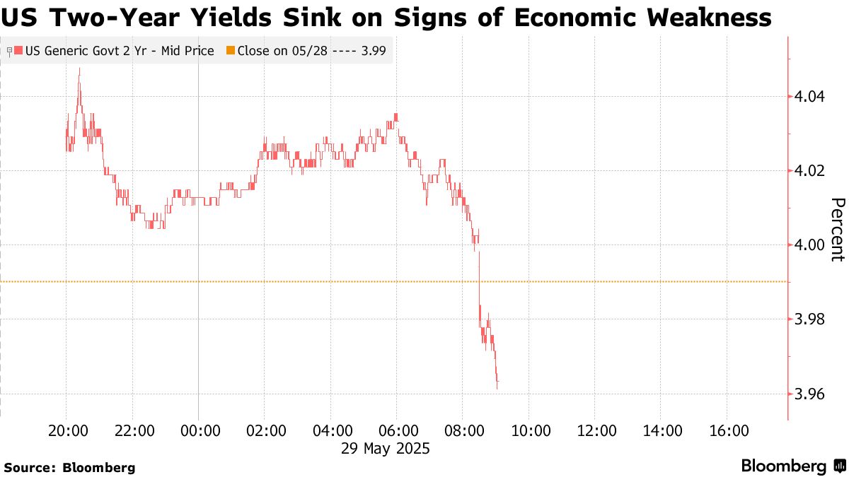 攝影師:Stefani Reynolds/Bloomberg美國國債上漲,因數據顯示全球最大經濟體年初出現萎縮,這強化了市場對美聯儲將在2026年初前降息兩次的押注。