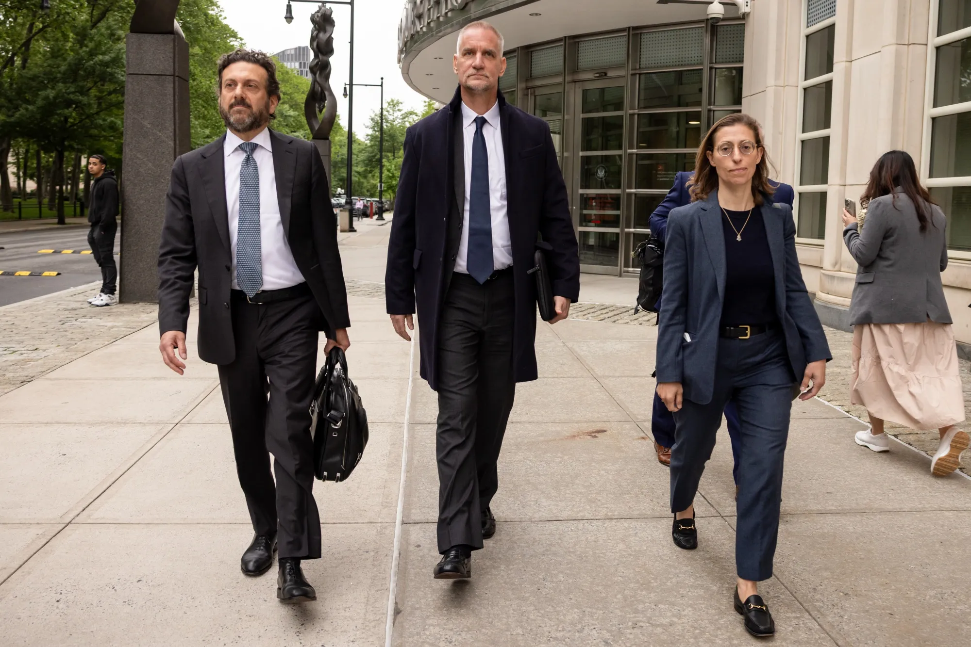 5月29日,高盛集團東南亞業務前董事長蒂姆·萊斯納在紐約布魯克林聯邦法院離開時的場景。