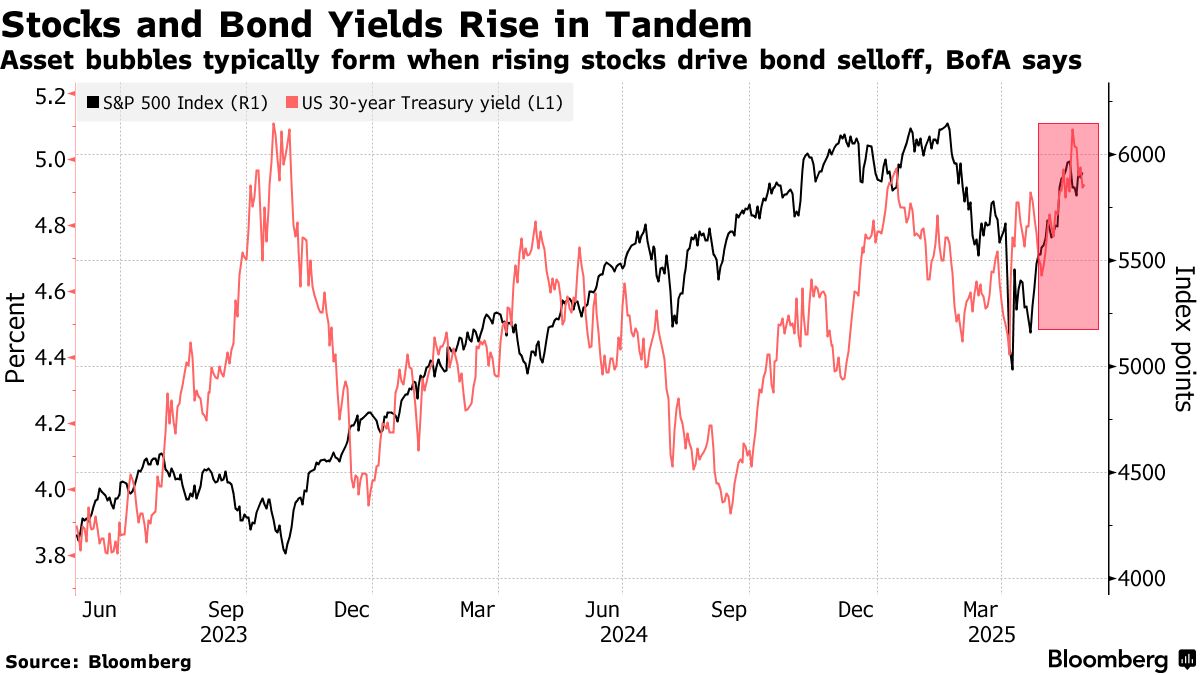 美銀策略師指出,在市場狂熱時期,股債之間的經典關係往往發生逆轉。過去14次資產泡沫中,有12次出現債券收益率上升現象,“沒有什麼比股市推高名義/實際收益率更能昭示泡沫的存在”。