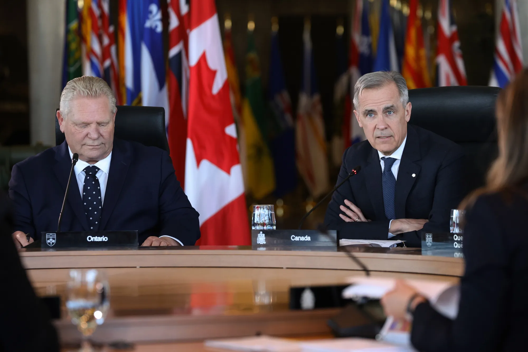 安大略省省長道格·福特與總理馬克·卡尼攝影師:David Kawai/彭博社總理馬克·卡尼正通過強制加拿大各省間實行貿易自由化,以抵消美國總統唐納德·特朗普關税政策帶來的經濟痛苦。