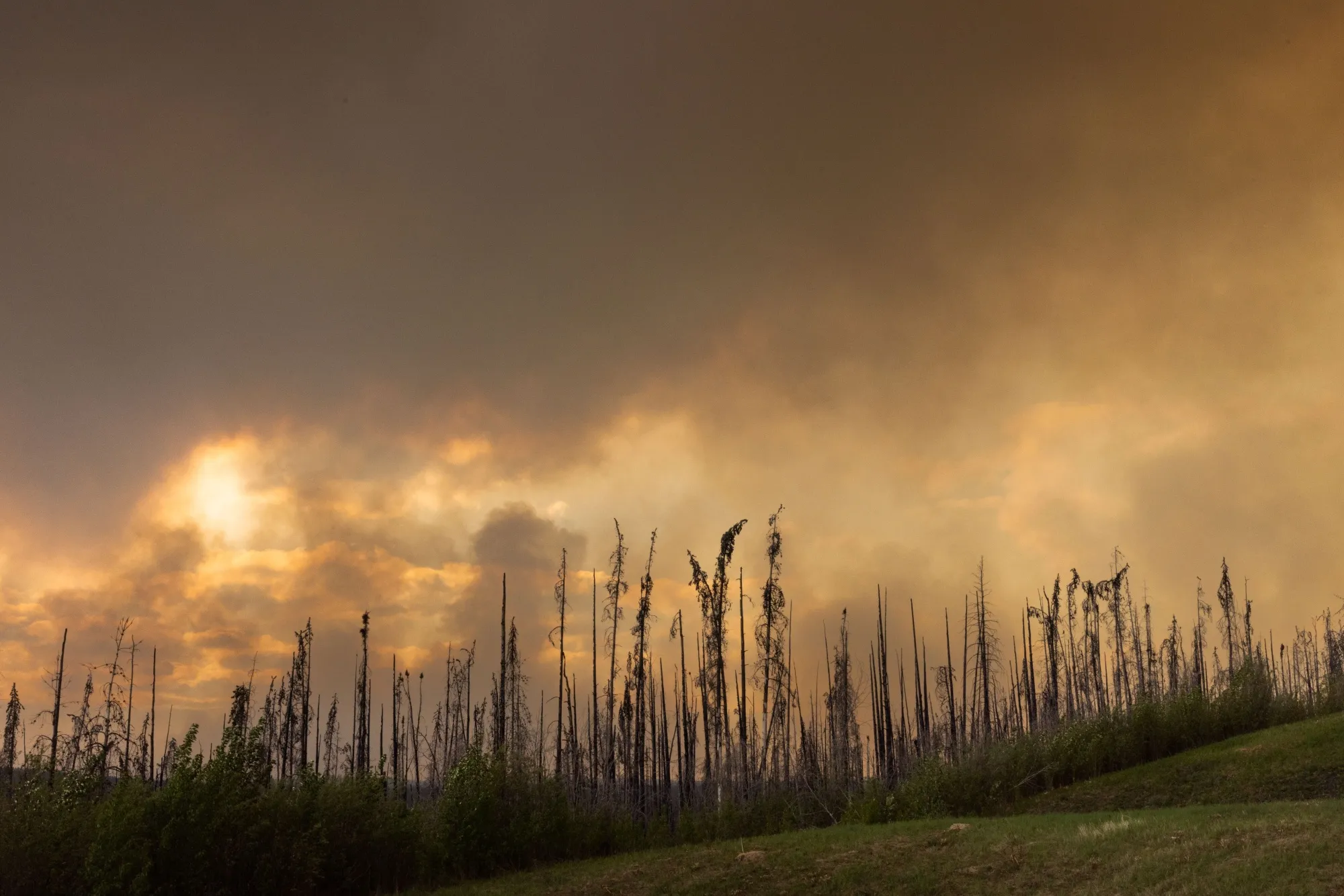 5月30日,不列顛哥倫比亞省特魯奇附近97號公路上空的野火煙霧。