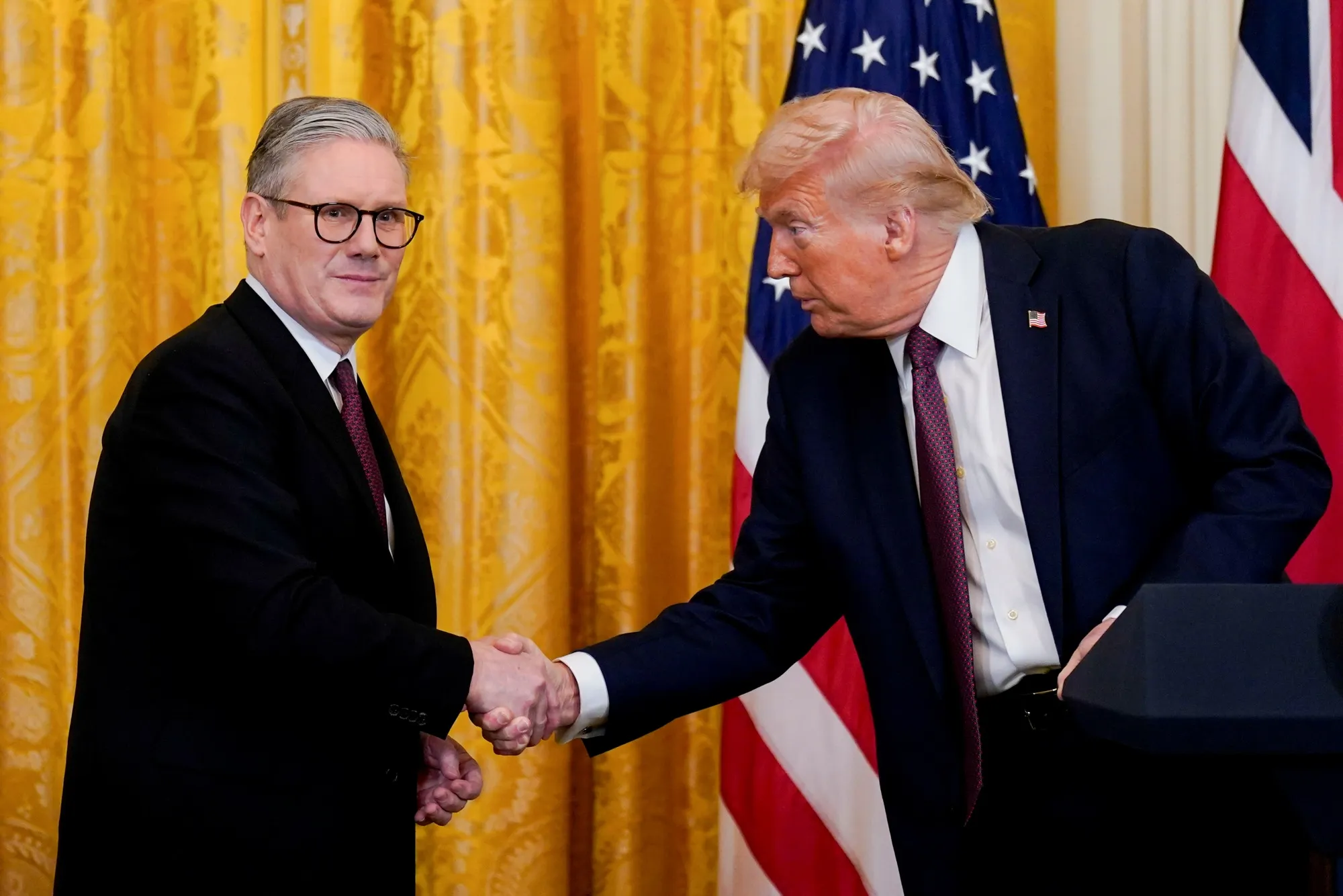 2月27日,英國首相基爾·斯塔默(左)與美國總統唐納德·特朗普在華盛頓白宮東廳會晤。