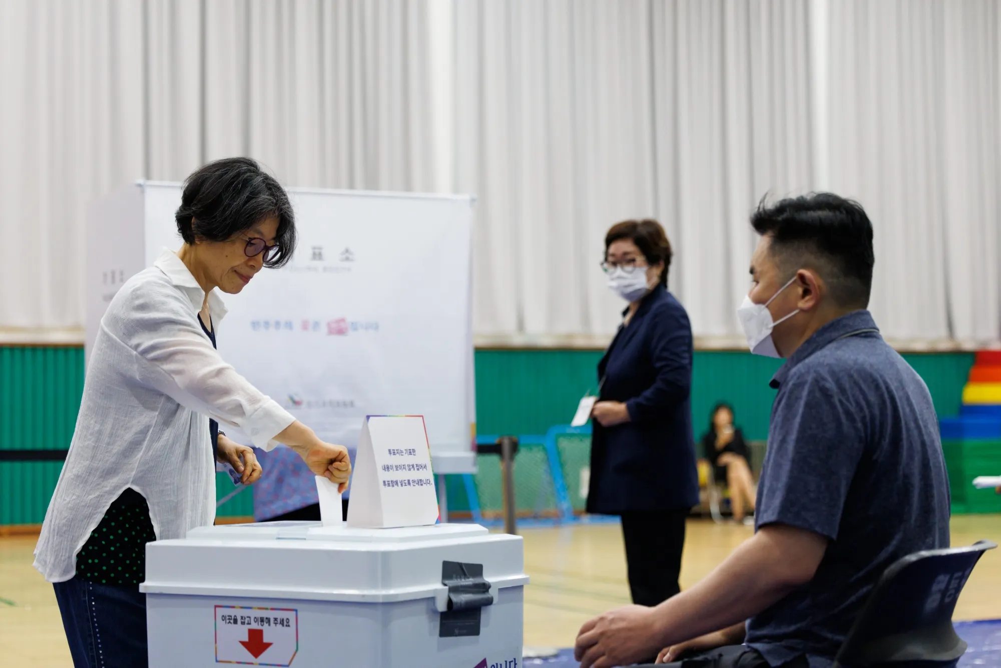 6月3日首爾某投票站的一位選民。攝影師:趙成俊/彭博社選舉結果也可能影響外交政策。雖然候選人大多表示將繼續鞏固與美國和日本的三邊關係,但李在明主張以更平衡的方式處理與華盛頓和北京的關係,並可能開啓與平壤的對話。