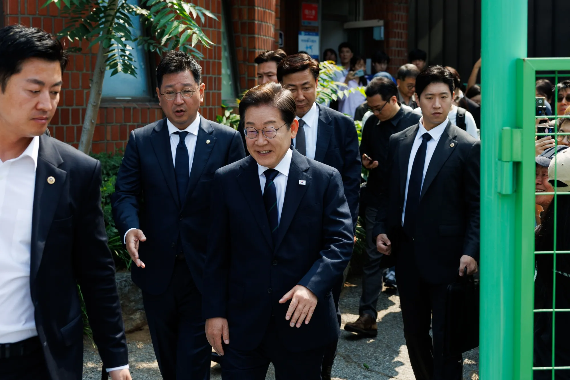 5月29日,李在明在首爾提前投票期間離開投票站。
