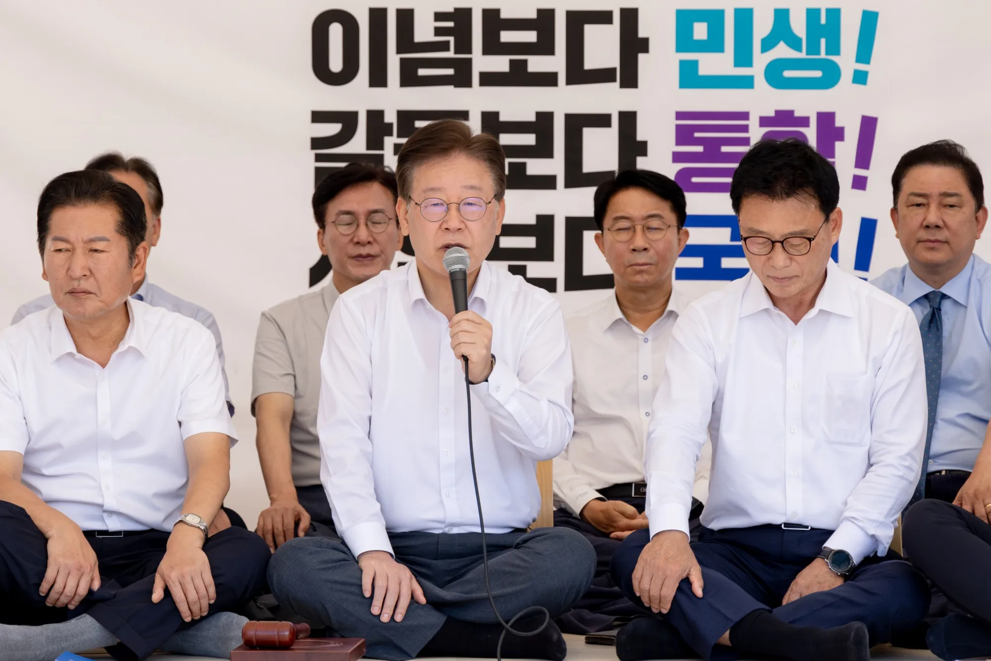 當他認為尹錫悦對日本2023年排放福島核電站污水抗議不力時,李在明發起持續逾三週的絕食抗議。反對者認為這可能是為了轉移對其涉訴案件及逮捕令的注意力。