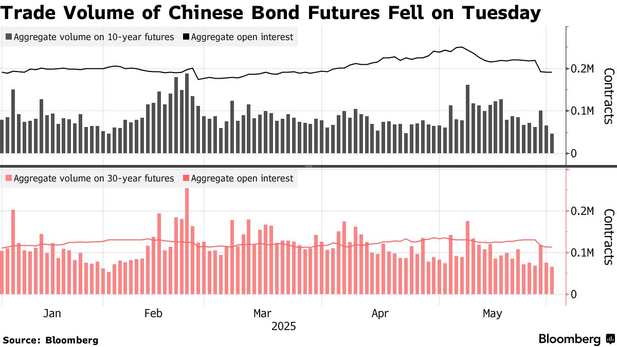 由於中美持續的關税爭端令交易員暫緩押注,中國長期國債期貨交易正在降温。