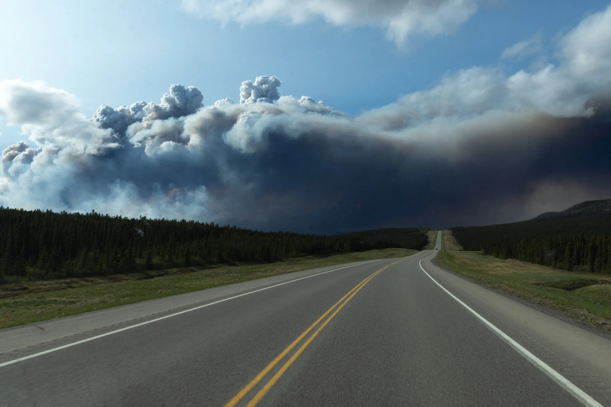 5月30日,不列顛哥倫比亞省特魯奇附近97號公路上空的野火煙霧。