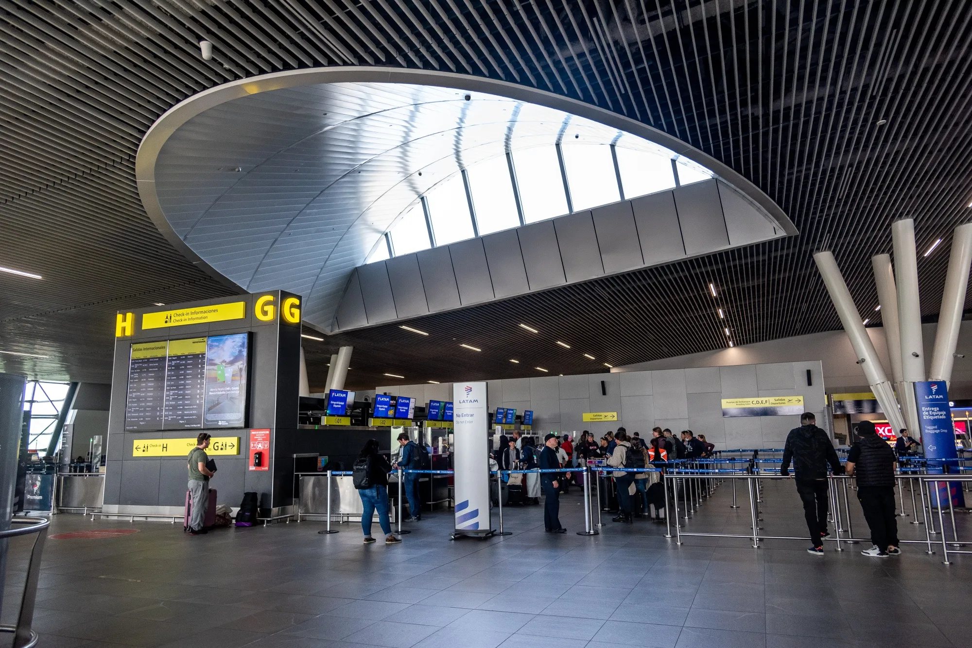 旅客們抵達智利聖地亞哥阿圖羅·梅里諾·貝尼特斯國際機場(SCL)的拉塔姆航空公司櫃枱。