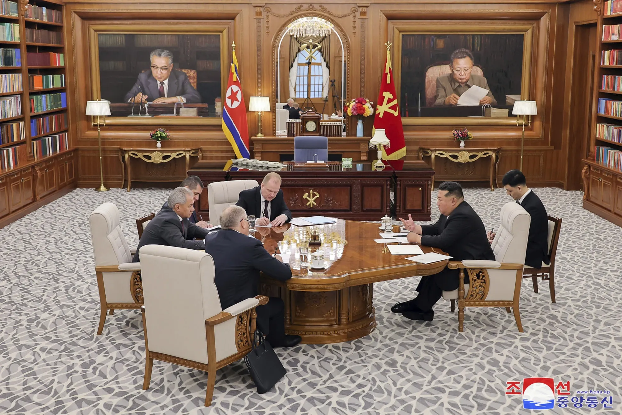 這張由朝鮮政府提供的照片顯示,6月4日,金正恩(右二)在平壤會見了謝爾蓋·紹伊古(左)。來源:朝鮮中央通訊社/韓國新聞社/美聯社照片朝鮮領導人金正恩重申了他無條件支持俄羅斯總統弗拉基米爾·普京的承諾,官方媒體稱,這兩個國家之間無視制裁的聯盟引發了該地區的安全擔憂。