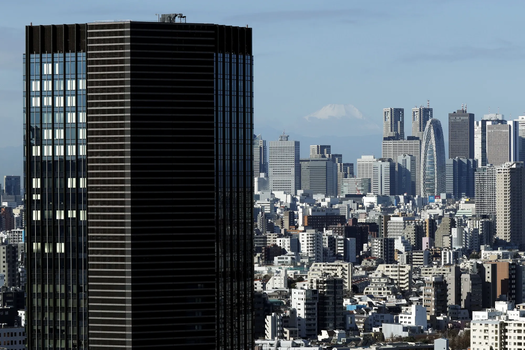 2025年2月14日星期五,日本東京新宿天際線與富士山。