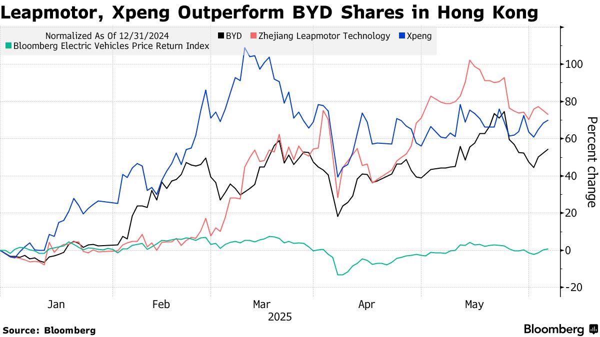 該公司在香港上市的股票今年迄今仍上漲54%,不過漲幅落後於零跑汽車和小鵬汽車約70%的漲幅。比亞迪目前的遠期市盈率為19倍,高於今年早些時候的14倍。