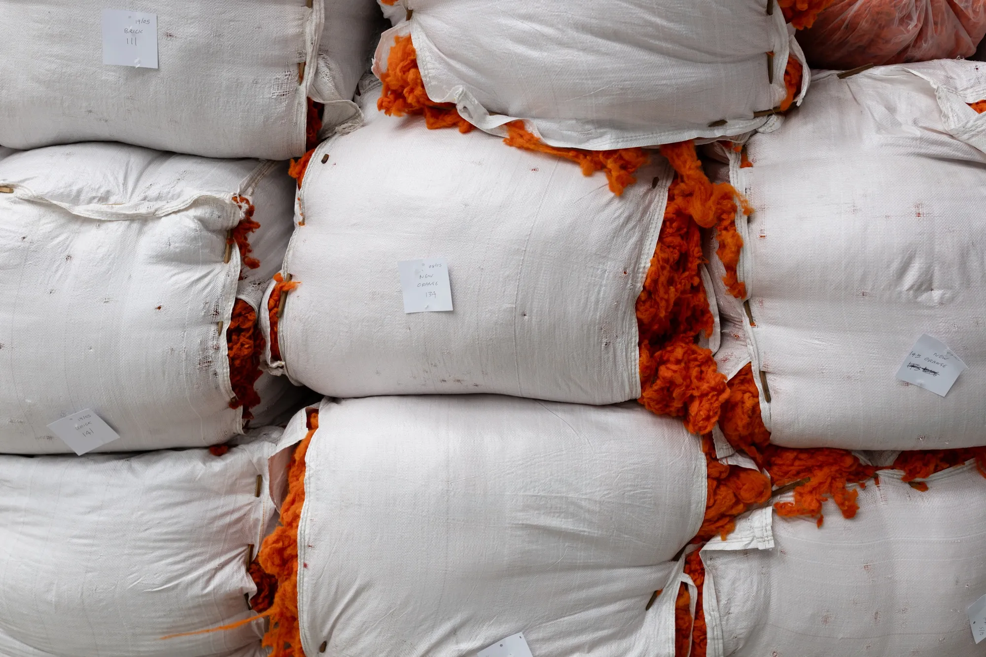 哈里斯粗花呢赫布里底公司所屬的肖斯特工廠內,染色的羊毛捆。攝影師:艾米麗·麥金尼斯/彭博社