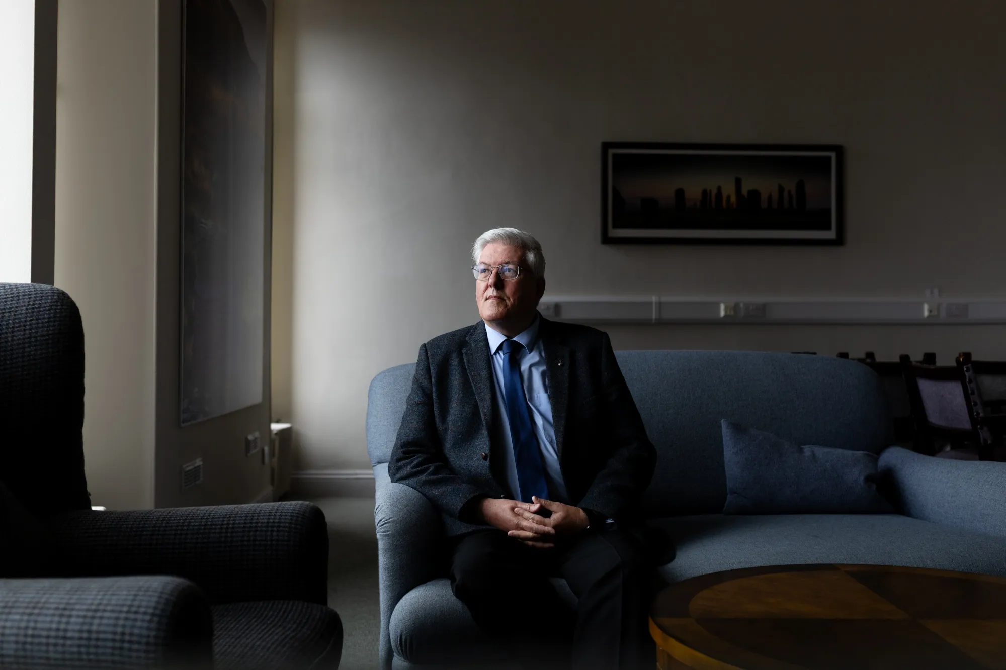 卡盧姆·伊恩·麥基弗在斯托諾韋的哈里斯粗花呢管理局辦公室。攝影師:艾米麗·麥金尼斯/彭博社"我們不會將生產轉移到海外,即使想這樣做,法律也不允許,“負責保護該布料聲譽的法定機構哈里斯粗花呢管理局臨時首席執行官卡盧姆·伊恩·麥基弗説,“讓製造業迴歸美國是特朗普的目標,但涉及行業太多。用這種生硬手段解決美國國內問題,簡直是大炮打蚊子。”