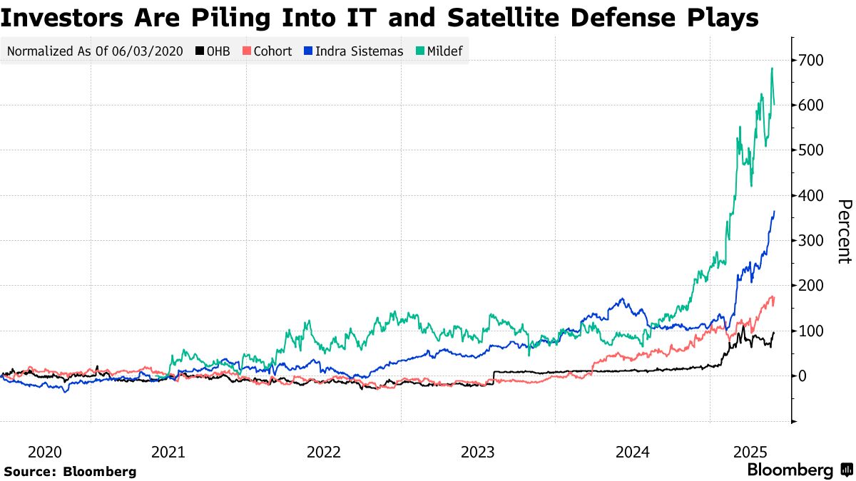 另一家衞星公司OHB SE股價同樣飆升,這家總部位於不來梅的製造商去年獲得21億歐元訂單後,被視為德國投資的潛在受益者。