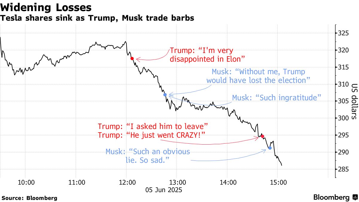 到了下午晚些時候,隨着特朗普所掌握的權力威脅要抹去馬斯克相當一部分財富,這一信息終於開始被理解。