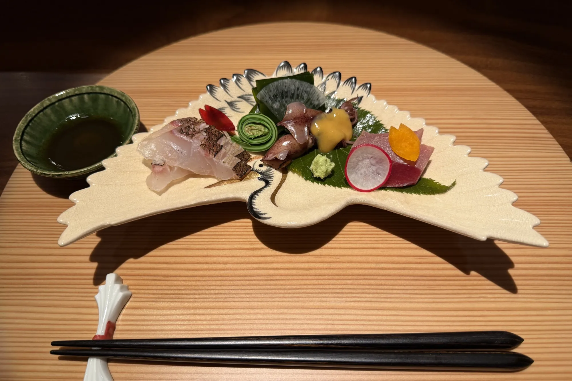 Nagamoto的Tsukuri。攝影師:Rebecca Sin/Bloomberg我們會再次點的菜: 我們最喜歡的是hachimono,這是一道來自宮崎的A5和牛,以涮涮鍋的方式烹製,上面鋪有季節性蔬菜、洋葱和新鮮捲心菜,配以清淡的湯底。這是一道軟嫩與酥脆口感完美結合的佳餚。Tsukuri也不會讓你失望,這是一道精選的生魚片拼盤,包括螢火蟲魷魚、味噌醬汁、比目魚和赤身金槍魚,最後點綴以鴕鳥蕨和蘿蔔。Agemono,即季節性油炸食品拼盤,同樣令人驚豔。