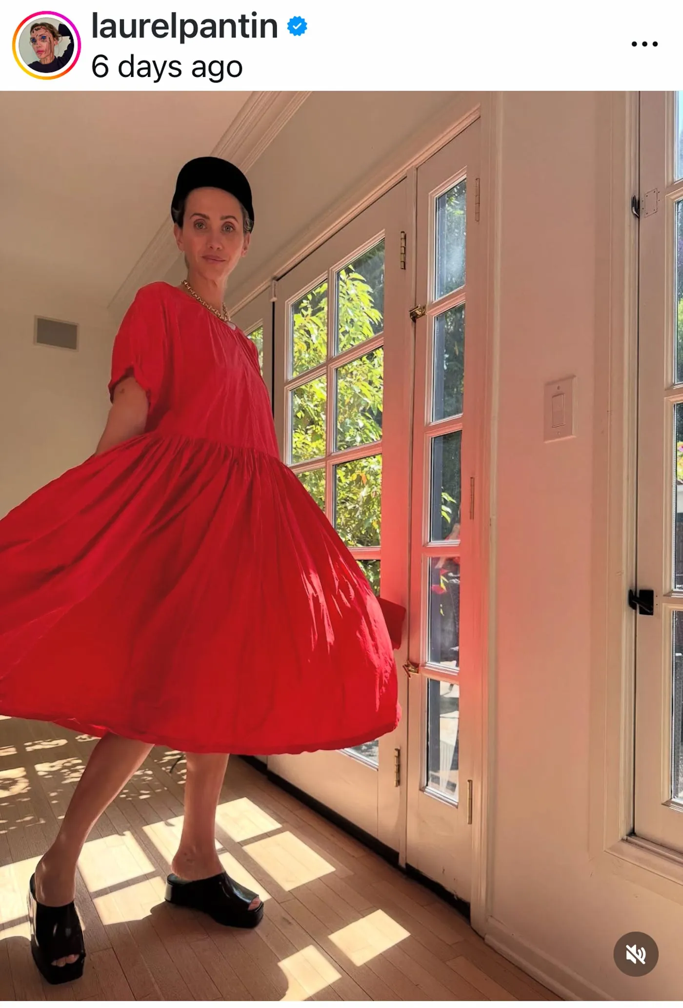 潘廷穿着一件寬鬆但不飄逸的連衣裙。來源:@laurelpantin/Instagram那該怎麼辦呢?就潘廷而言,她不常穿連衣裙。但如果她真的想穿,她會傾向於選擇棉質府綢,這種面料更有型,並選擇"略帶’另類’顏色的純色款”,比如芥末黃、梅子色和明亮的橙紅色。“或者如果是印花,就選格子或條紋。”