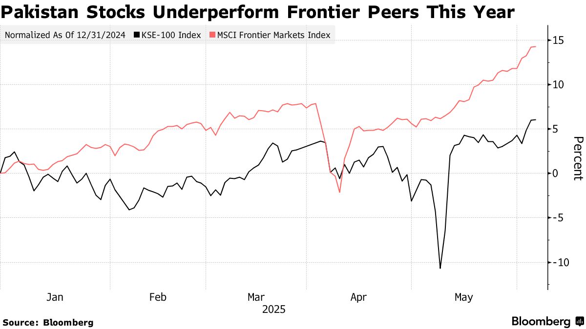 KSE-100指數今年上漲6%,此前2024年和2023年分別錄得84%和54%的漲幅。該國美元債券2025年回報率為7%,而去年同期約為30%。