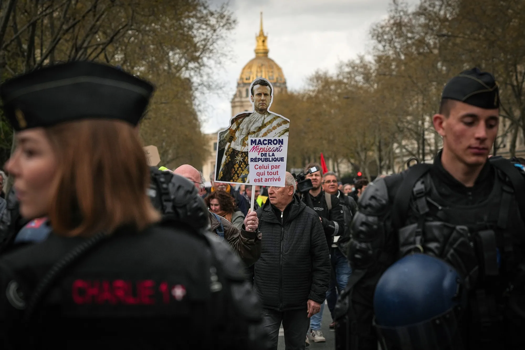 2023年巴黎市中心反對養老金改革的示威活動。攝影師:內森·萊恩/彭博社在議會中馬克龍的核心支持者看來,隆巴爾的温和風格頗受歡迎,他們認為需要這種合作精神。但也有人擔憂,他這種温和對話的方式可能為預算提案的混亂局面打開缺口——那些更具政治野心的部長們正覬覦着2027年馬克龍時代結束後的權力真空。