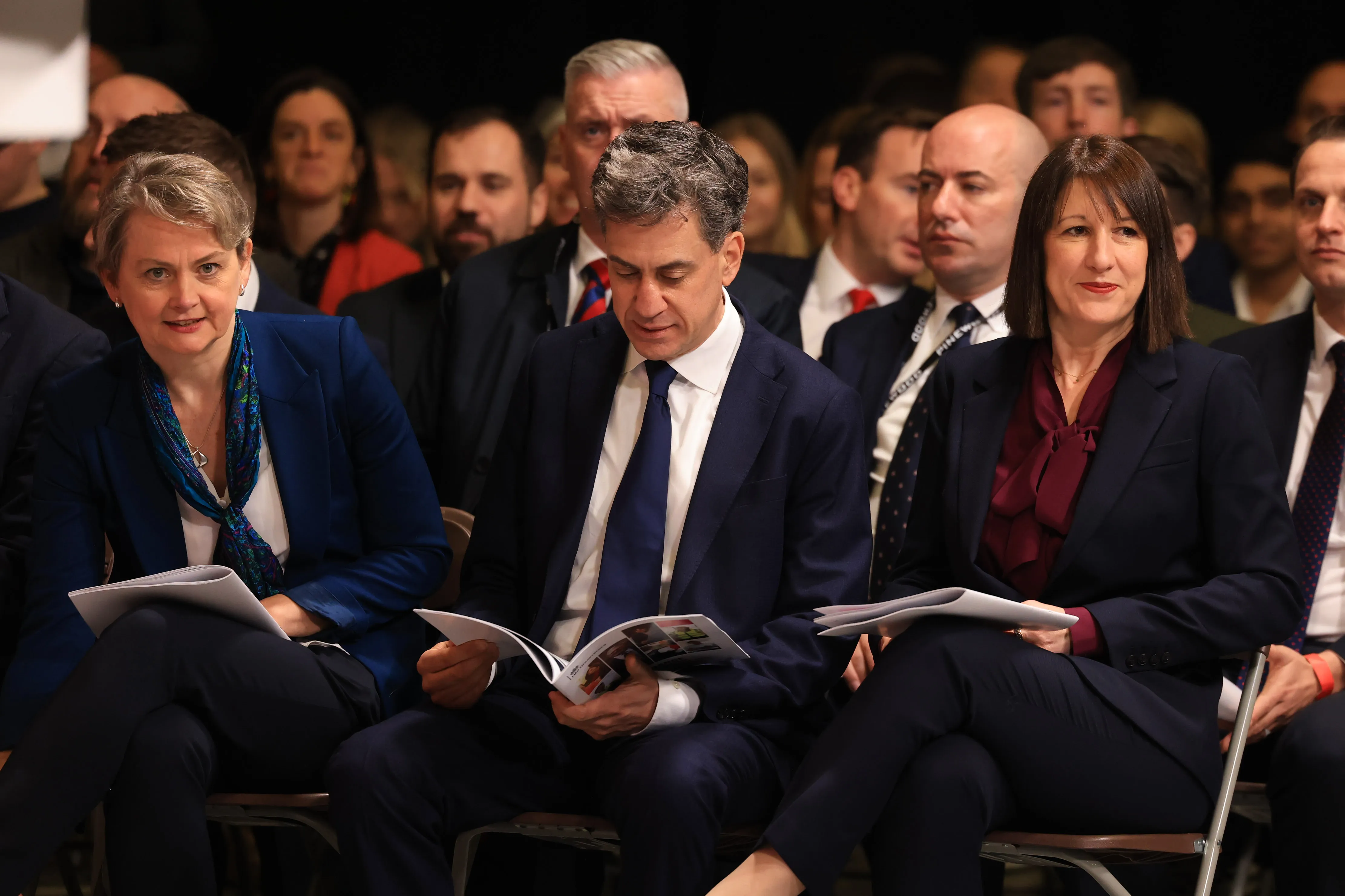 從左至右依次為:英國內政大臣伊薇特·庫珀、能源安全大臣埃德·米利班德、財政大臣蕾切爾·裏夫斯。