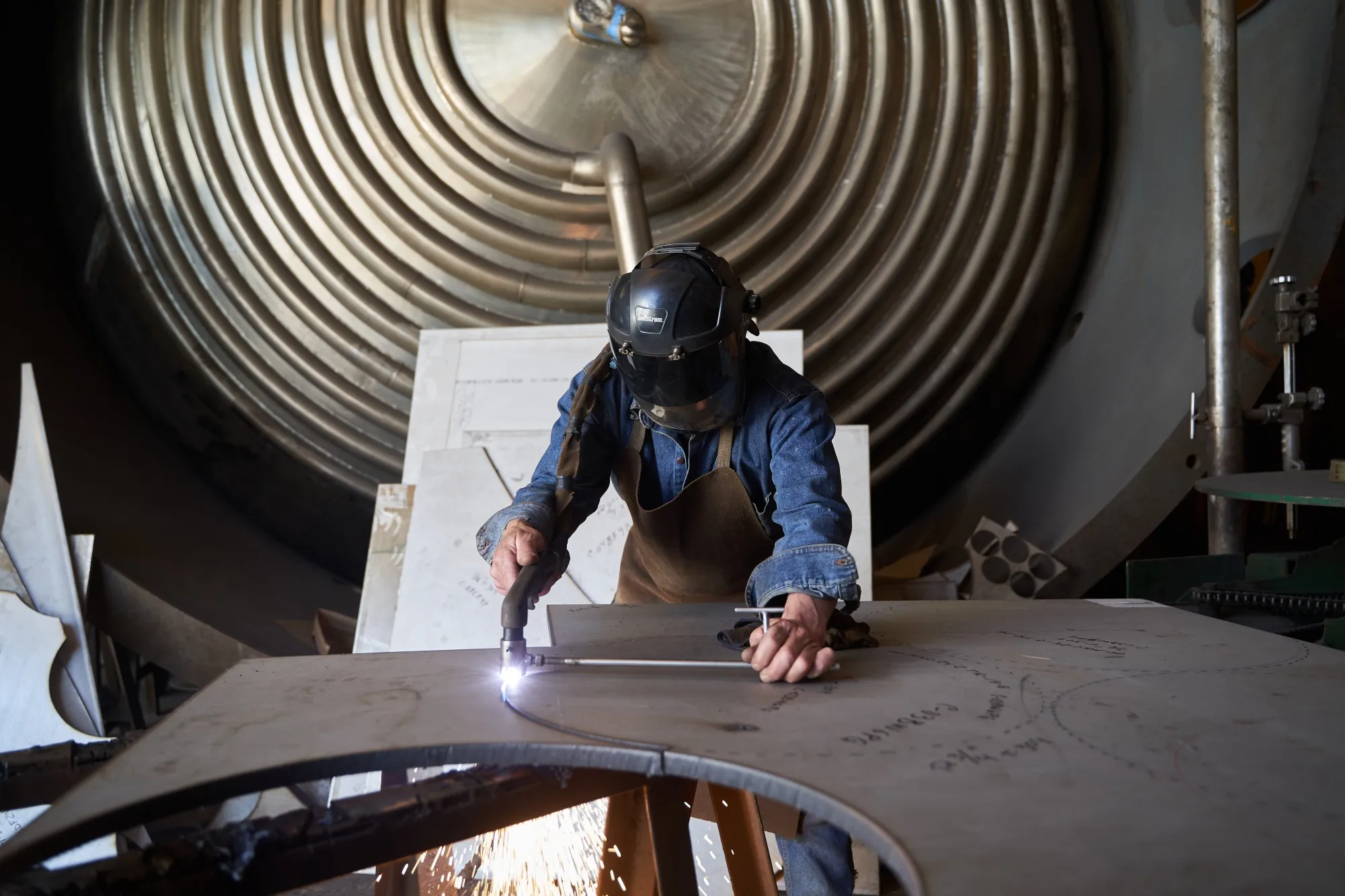 一名工人在墨西哥城的鋼鐵製造廠切割不鏽鋼板。攝影師:毛裏西奧·帕洛斯/彭博社閲讀西班牙語版本
