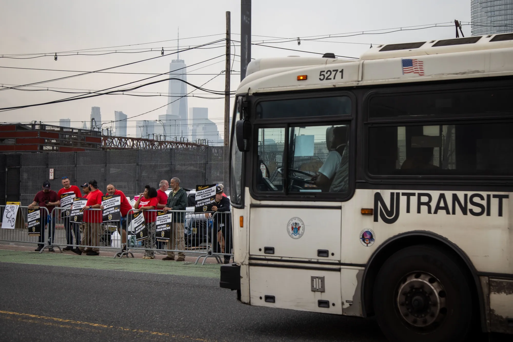 5月16日,新澤西州霍博肯市罷工期間,機車工程師在霍博肯車站外設置糾察線。