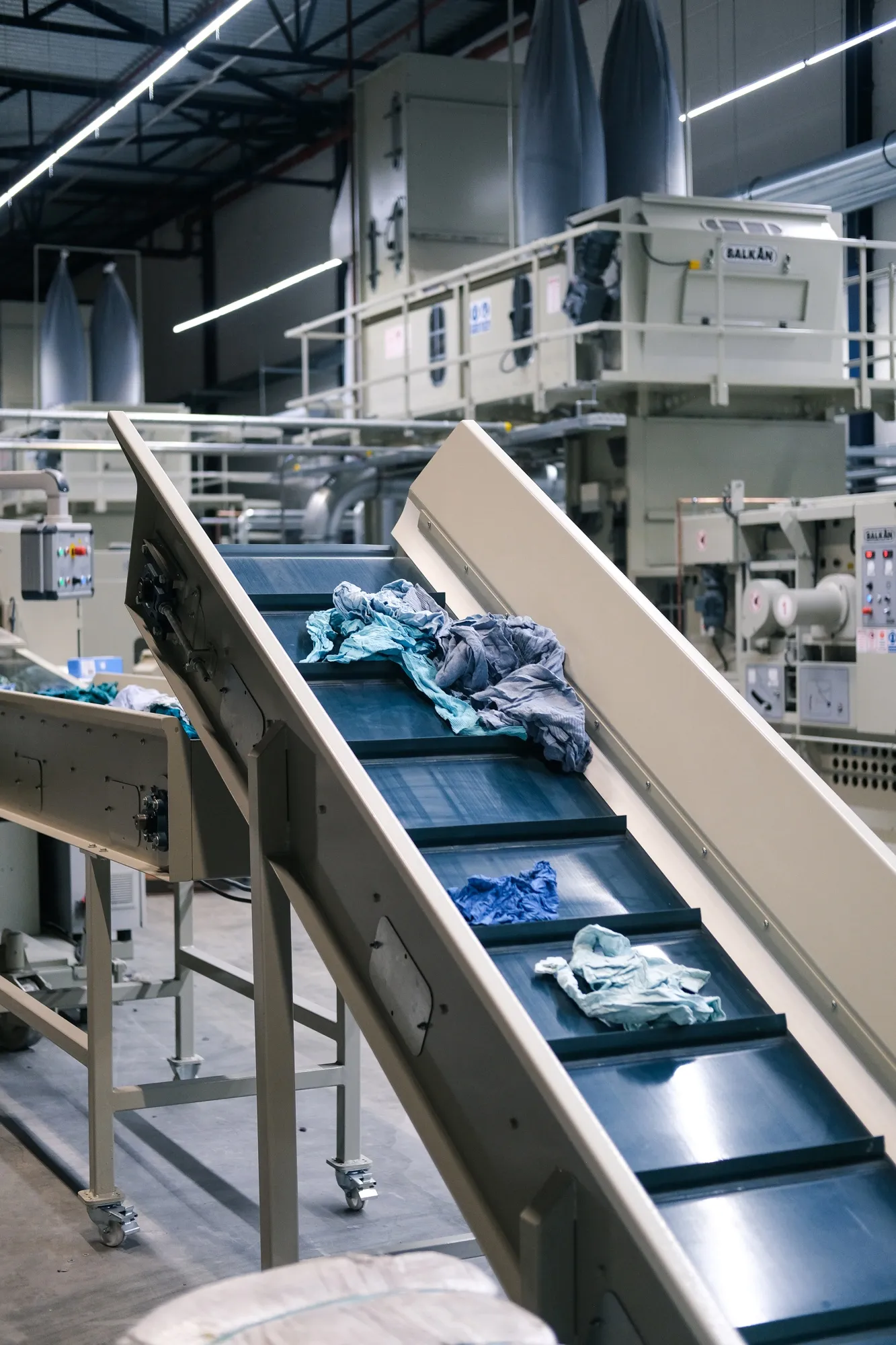 當舊衣物抵達Brightfiber時,光學分揀機利用近紅外光識別衣物的材質和顏色,隨後將其分類為90種不同類別。共有十種顏色和九種材質組合,包括棉-聚酯纖維、聚酯纖維-彈性纖維以及棉-聚酯纖維-彈性纖維混合。由Valvan開發的第二台機器將這些衣物撕碎成手掌大小的碎片,並去除紐扣、拉鍊和標籤。