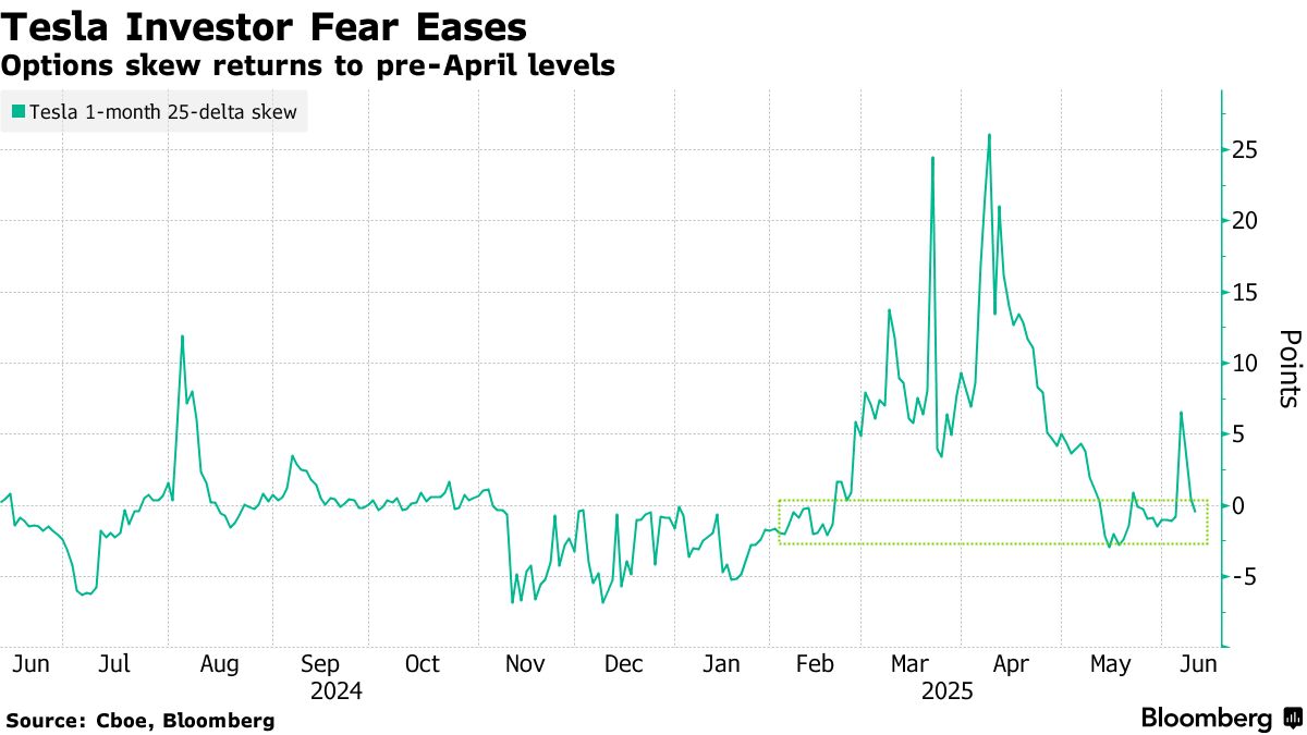 該股的偏度指標(衡量投資者看漲或看跌傾向)趨於平緩,此前上週的戲劇性事件導致看跌期權激增,因股東們進行了對沖操作。