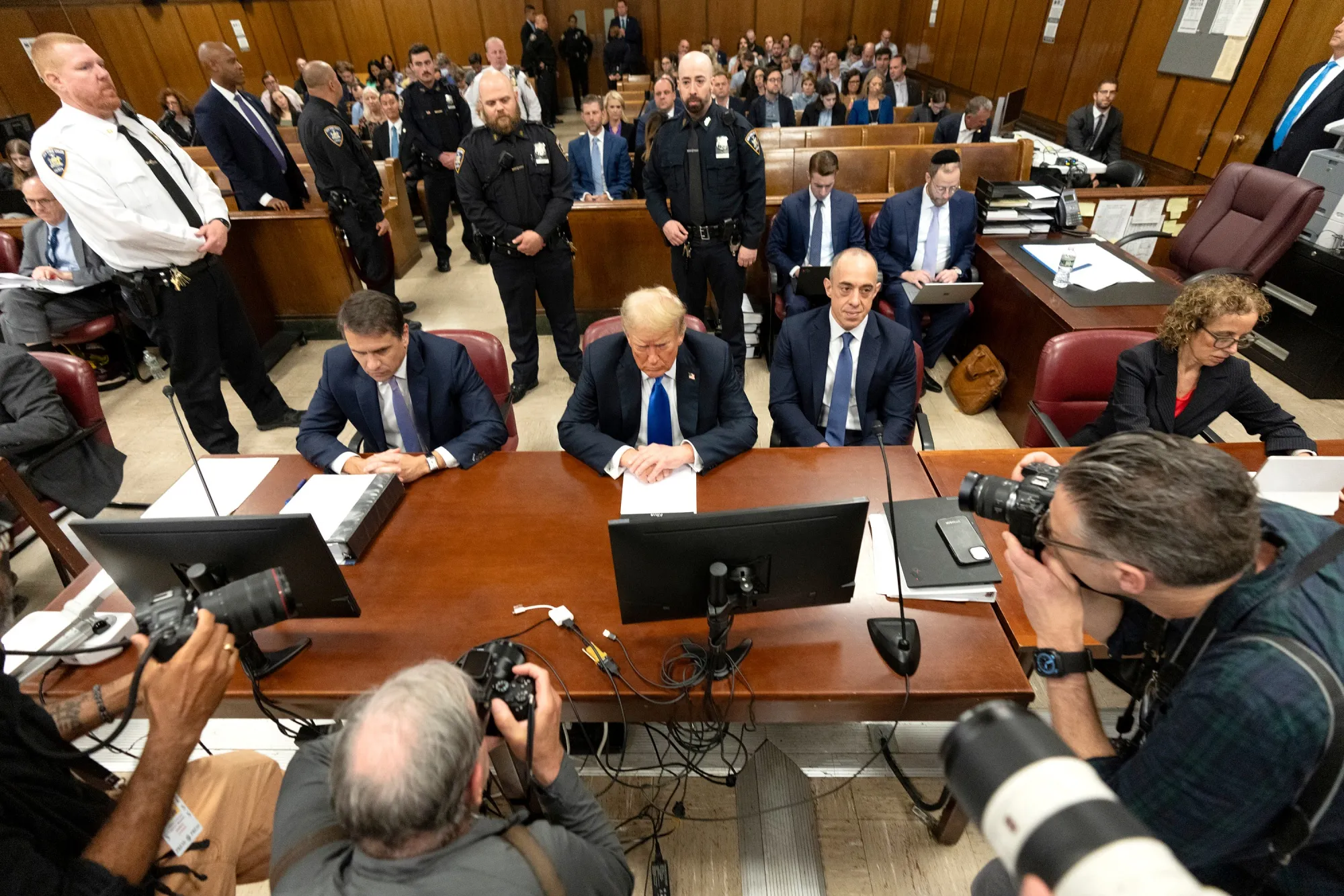 2024年5月,唐納德·特朗普在紐約曼哈頓刑事法庭(中)。攝影師:史蒂文·赫希/紐約郵報/彭博社唐納德·特朗普的律師將於週三重返法庭,再次推動撤銷紐約陪審團的裁決——該裁決使他成為首位以重罪犯身份擔任總統的人。