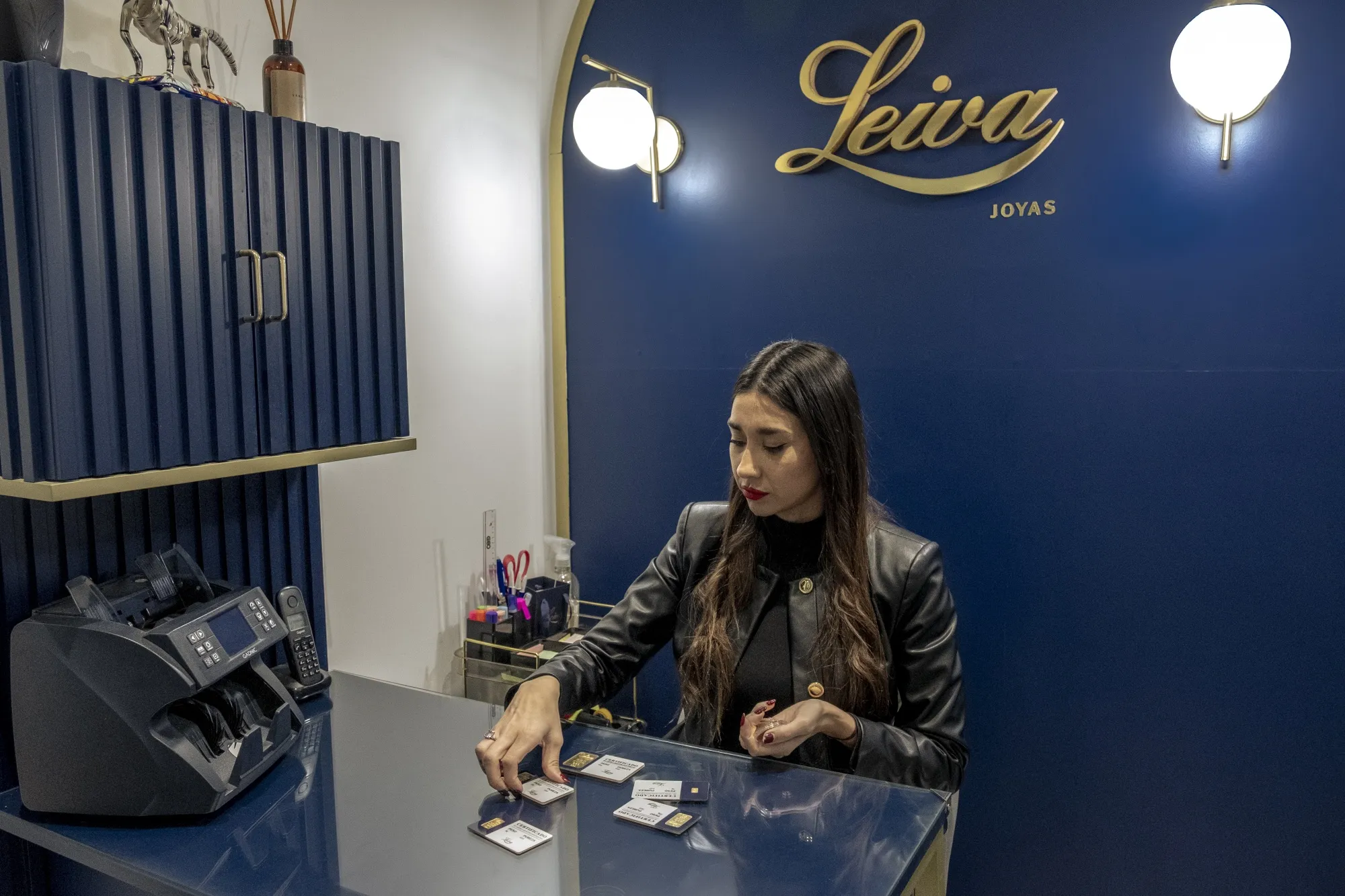 萊瓦珠寶的戴安娜·阿茲科納。攝影師:埃裏卡·卡內帕/彭博社這一趨勢正蔓延至金融界之外。阿根廷最老牌珠寶商之一萊瓦珠寶2025年每日黃金諮詢量增長兩倍,達到300次。相比2024年,今年銷售額已翻倍。“經濟不確定性下人們希望保值,他們知道定期存款收益太低,“萊瓦珠寶銷售主管戴安娜·阿茲科納表示。